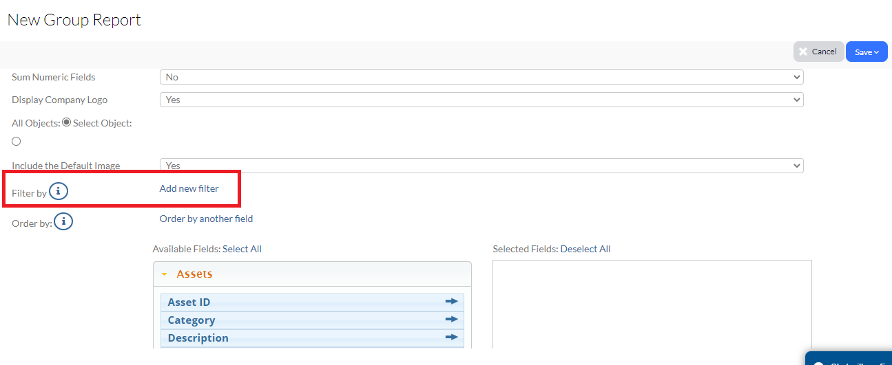 4. Fill in the applicable fields. (See Create a New Report to find out more about creating new reports.)